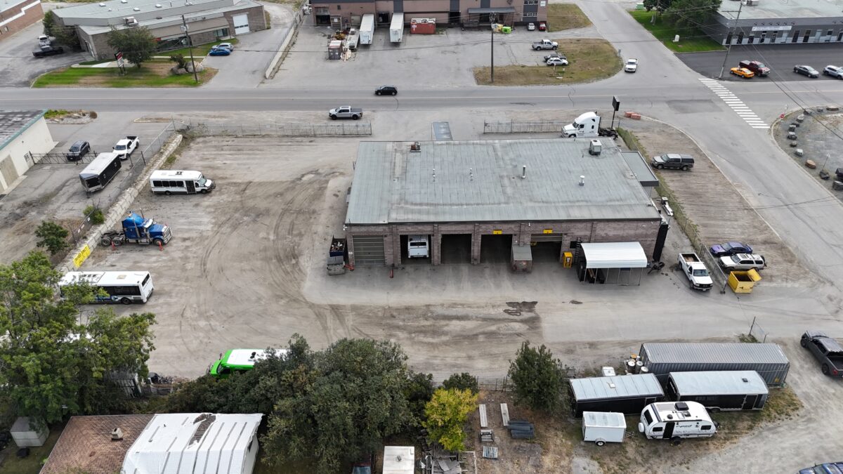 The property features 6,338 SF of shop space with 15’9” clear height, nine drive-in doors with drive-through capability, a 1,637 SF mezzanine, and 2,940 SF of office space. The site offers dual access, ample yard space, strong truck circulation, and infrastructure including 200-amp power, fibre connectivity, and a clean-burn recycled oil heating system.